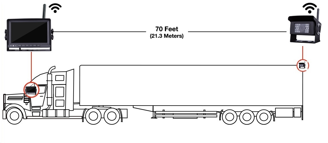 Комплектите от монитор и камера за заден ход са по-модерните и удобни за използване варианти, отколкото жичните. По-удобни са от гледна точка на това, че не се изисква сложен монтаж с пускане на кабели по продължение на автомобила, които да свързват камерата за задно вижда отзад на автомобила с монитора до таблото. При такъв монтаж в повечето случаи се изисква частично разглобяване и разместване на интериора на автомобила, което оскъпява инсталацията, отнема време и води до неудобство. Новият комплект AT C109M разполага с безжична връзка между монитора и камерата в комплекта, осигурена чрез 2.4GHz R / F предавател. Компонентите са качествени и осигуряват стабилност при предаване и получаване на сигнала и яснота на картината. Тук не се налага инсталация на кабели по цялата дължина на автомобила. Единствено се подава захранване към монитор и камерата, след което се настройват. Комплектът е предвиден най-вече за по-дълги и големи превозни средства точно поради тази причина – не е нужна кабелна връзка между двете устройства, което улеснява използване им. Така камерата за заден ход и мониторът за обратно виждане могат лесно да се инсталират на ТИР, камион, бус, кемпер.