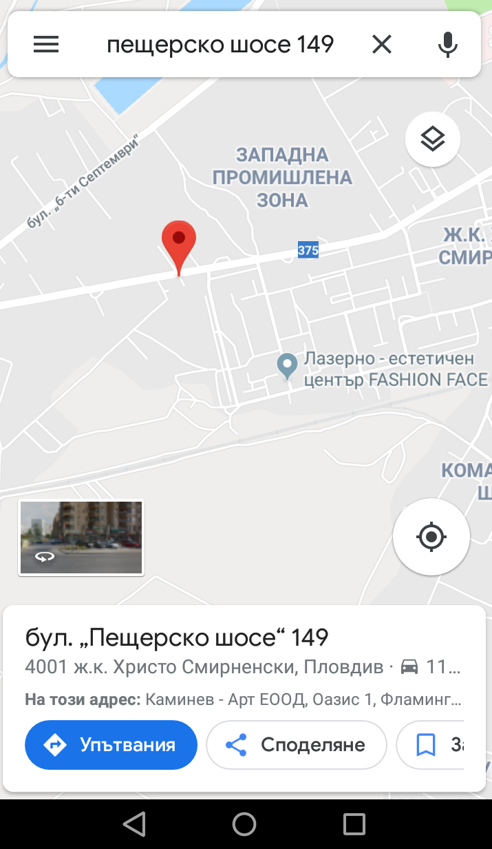 Можете да въведете желания от вас адрес. След това трябва изберете как желаете да стигнете до там. Опциите са с автомобил, пеша или с колело. Ще видите разстоянието до там и приблизителното време на пътуването.