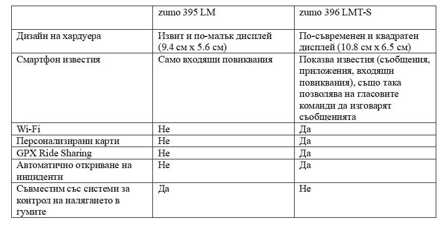 Новата Garmin zumo 396 LMT-S  навигация предлага някои нови интересни функции (GPX споделяне, персонализирани карти, актуално време), като в същото време запазва мейнстрийм функциите като adventure routing. По-високата цена е неизбежна като при всеки нов модел, но наистина поставя под въпрос колко важни са новите функции за вас, тъй като старият модел е на по-ниска цена. Разбира се, няма как да не отбележим, че zumo 396 LMT-S навигацията е страхотно ново допълнение към пазара за GPS навигация за мотор.