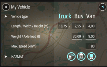 Това са най-основните параметри, които трябва да покрива една добра навигация. Другото основно при навигациите за камион, е специализираният софтуер. Навигациите за камион се различават от тези за кола по това, че можем да въведем параметрите на превозното средство и според тях да се изчисли маршрут , съобразен с тях, според забраните, регулациите и предупрежденията. Това гарантира изчисляването на сигурен и коректен маршрут до желаната точка, без проблем и риск от глоби. Освен това специализираните софтуери предлагат и допълнителна функционалност за информация за полицейски постове и точки на интерес по маршрута.