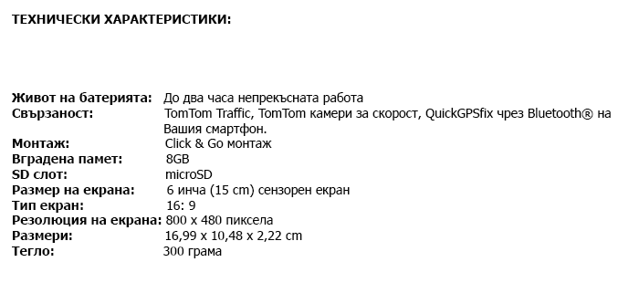На вашето внимание можем да ви представим новият модел на TomTom GO 610. Вискокачествен 6 инчов дисплей с висока резолюция 800x480, лесно и достъпно меню за работа. Меню и гласова навигация на Български език. Предлага се с карти на България и цяла Европа с доживотни актуализация. Гаранцията на продукта е 24 месеца.